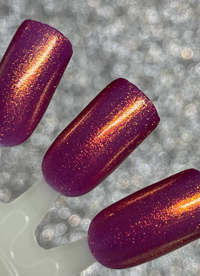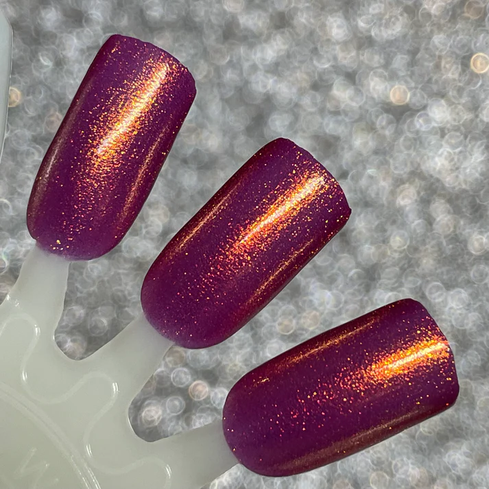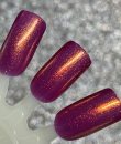 This polish has a cranberry pink base and strong gold shimmer. The combination of the base and shimmer can cause the base to appear slightly orange in some lighting conditions.