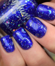 Constellation Prize is a bold and shimmery cobalt blue nail glitter nail polish. Like stars in the sky, mini silver hex holographic glitters float in the base, catching the light for an enchanting twinkle. Larger silver dots mimic stars, creating out-of-this-world sparkle. If lucky, you may catch a crescent moon, but if not, don’t worry—each polish includes a mini bag with holo silver full and crescent moons for easy nail art placement. Apply 2 coats of polish as normal, then use the polish brush or tweezers to place a moon if desired. For a glass-like finish, follow with a coat of Smooth Moves Glitter Topper and a coat of Clearly On Top quick-dry topcoat.