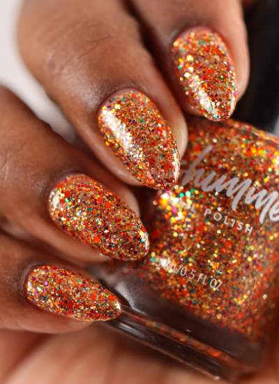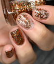 It’s Crunch Time is an autumn leaf–inspired mix of metallic hex glitters in a clear base. Worn in one layer over your favorite autumn crème, the mix of gold, copper, sand, red, burgundy, orange, and green echoes those piles of fallen leaves. Layer in two or three coats for a full-coverage manicure or accent nail perfect for autumn. For a glass-like finish, follow with a coat of Smooth Moves Glitter Topper and a coat of Clearly On Top quick-dry topcoat.