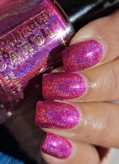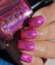 Bubblegum Galaxy a berry pink linear holographic with color shifting shimmer.