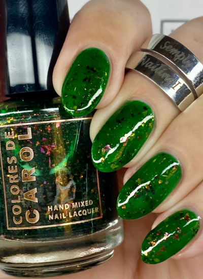 Deck the Palms, a deep forest green jelly with color shifting flakes, fairy flakes and UCC flakes.
