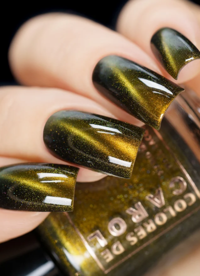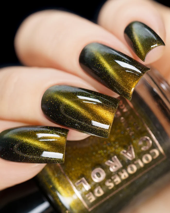 Ghoulfriends Only, a black crelly with holo dust and green/copper/gold multichrome magnetic effect