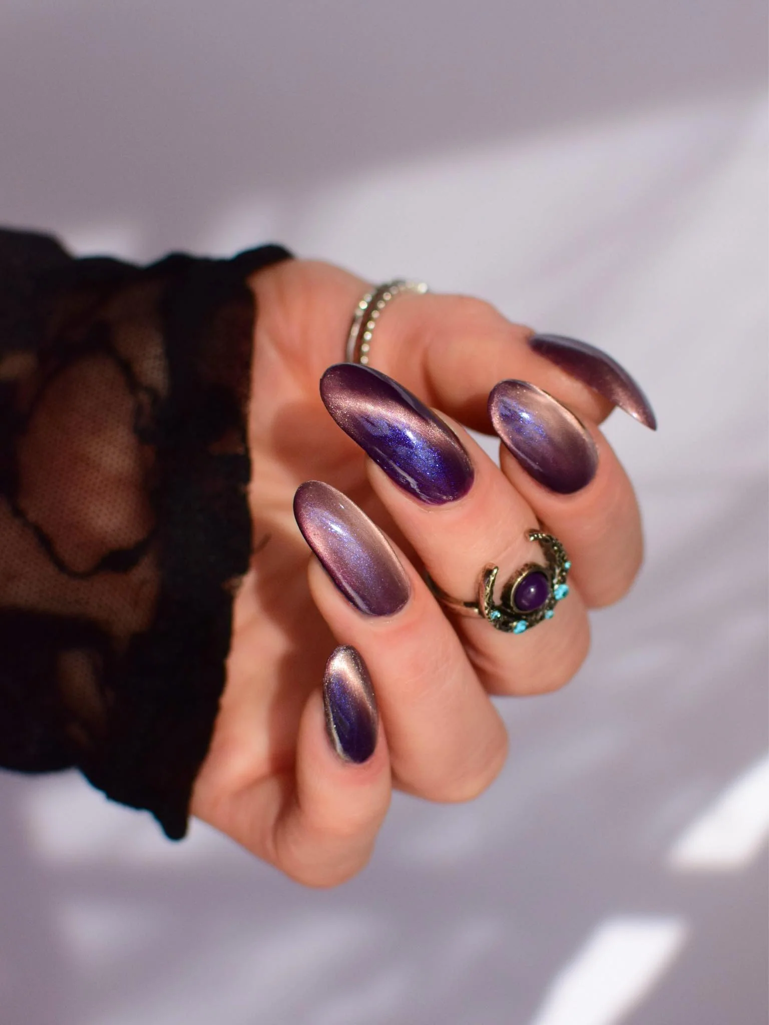 By The Moonlight- plum with blue shimmer and a soft gold magnetic pull.
