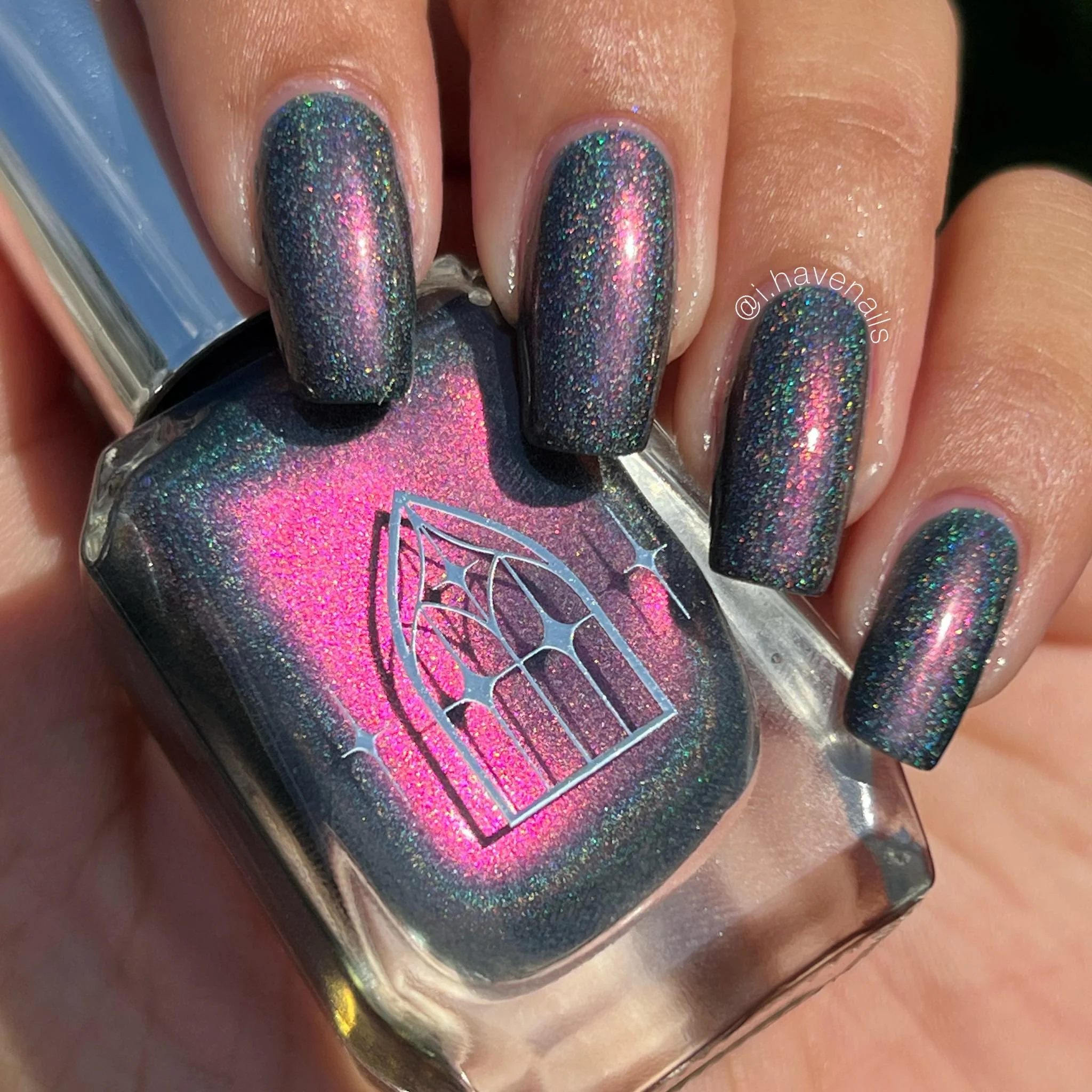 Witching Hour- dusty teal with fuchsia shimmer and holographic pigments.