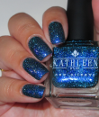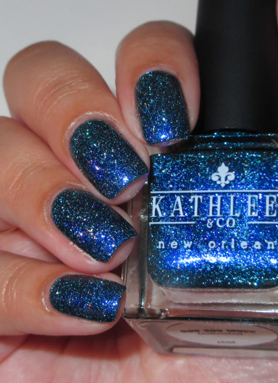 blackened aqua base with holo flakes, glowy blue shimmer and teal reflective.