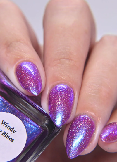 Windy City Blues - lilac base with holo flakes and glowy aqua/blue shimmer